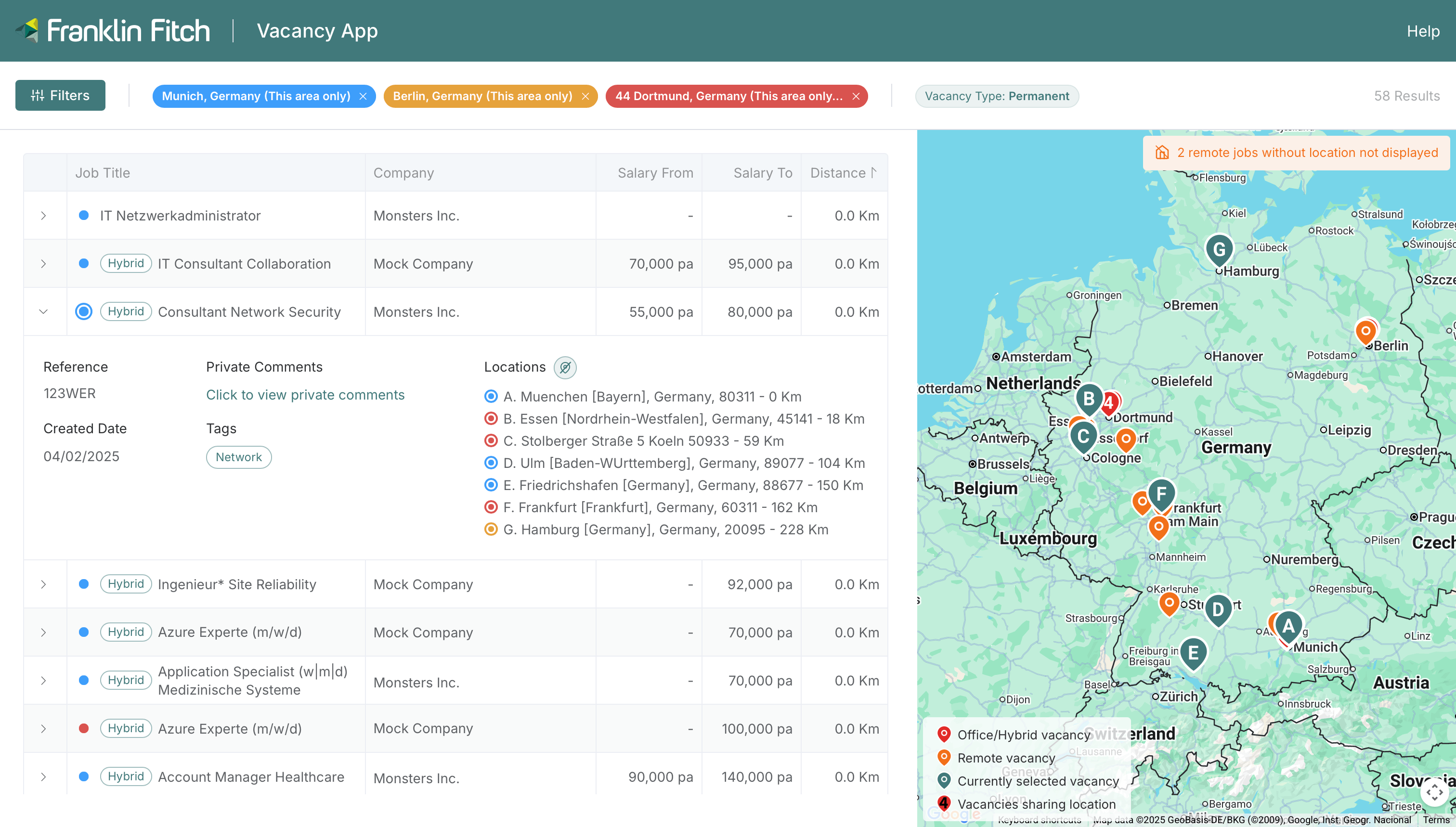 developed with a split UI, presenting granular vacancy details in a structured table alongside an