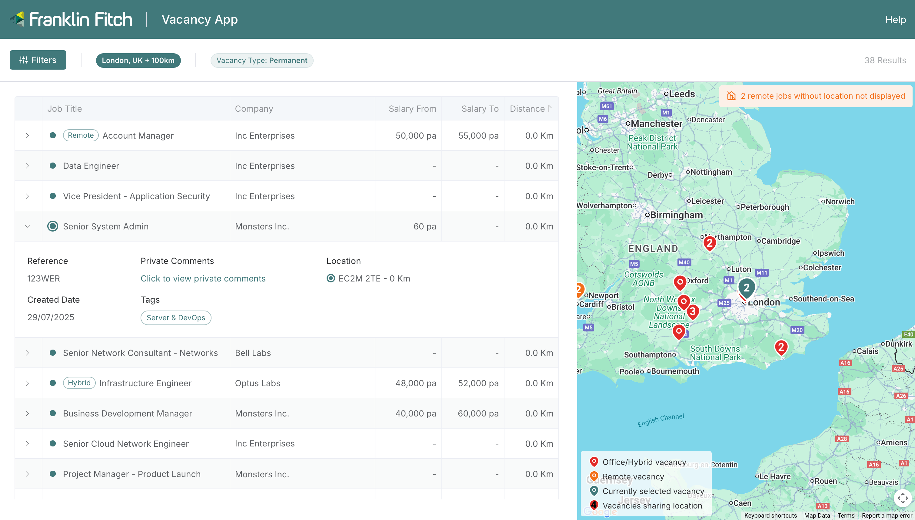 developed with a split UI, presenting granular vacancy details in a structured table alongside an